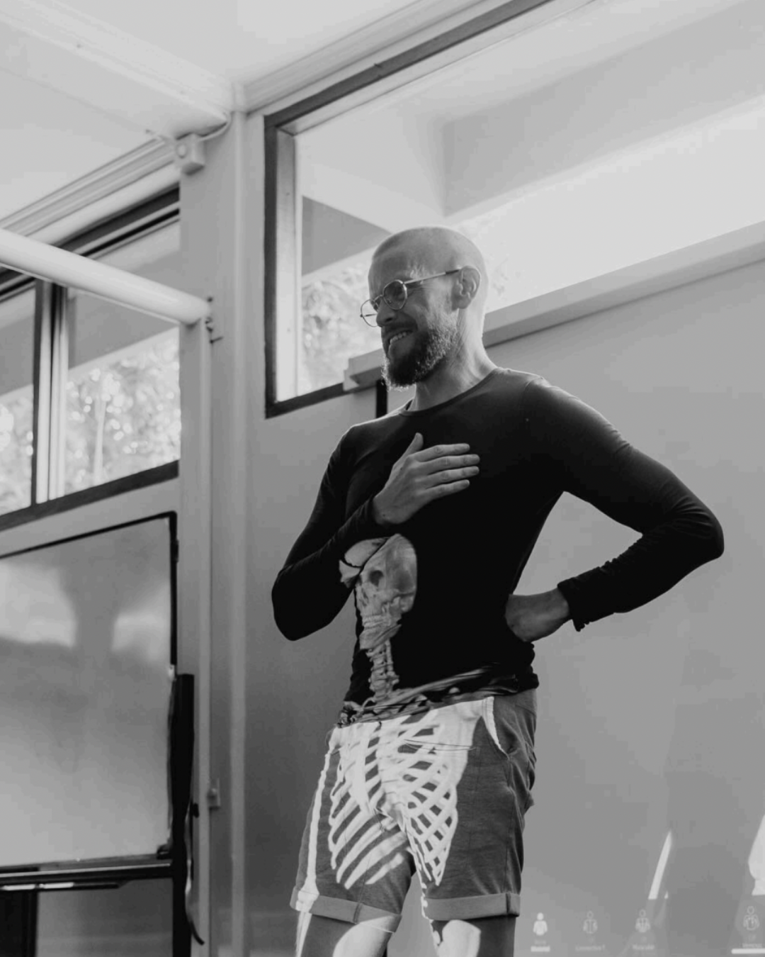 There was a teacher I followed for many years. When he finally came to Bali, I realized I had put him on this pedestal. And then I got there and it was four of us in the tiniest room. I started to see behind the veil. But that was the good part. I took his trainings, became a colleague, and we taught together for about four years. What inspired me most was his fluidity and his way of mixing things from outside the realm of Eastern philosophy, neuroscience, Western psychology, poetry. That's where my own curiosity started developing. Into mobility, into music, into movement as something more poetic. It evolved into something that became mine. And it's still evolving.