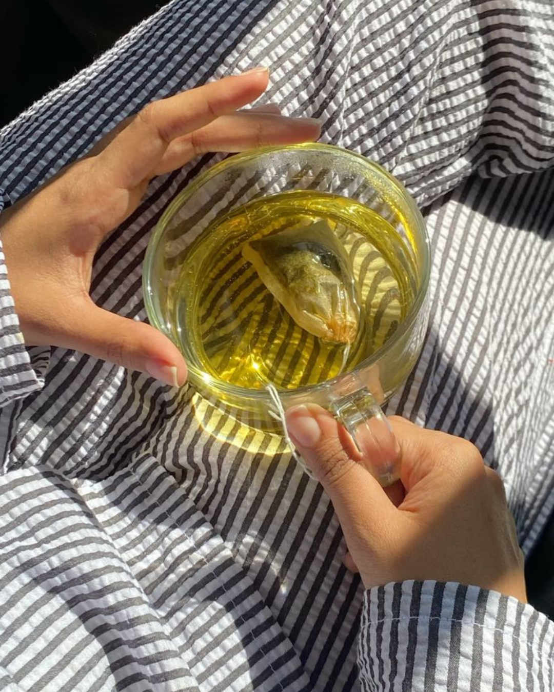 When skin feels reactive, I often see it as the body asking for calm. Warm water with turmeric and a pinch of black pepper supports the body’s natural anti-inflammatory response. Spearmint tea is another option I keep coming back to, especially when breakouts feel hormonal or stress-related. Tulsi water is also used first thing in the morning to support immunity and reduce internal heat, which often shows up on the skin.